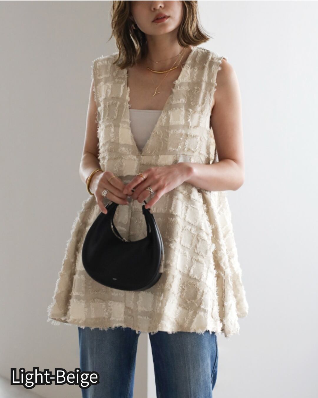 ※同素材のブロックフリンジワイドパンツと合わせていただくと、セットアップコーデがお楽しみいただけます。