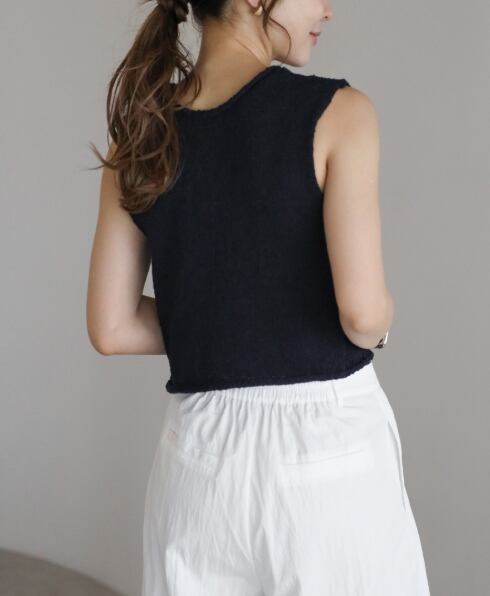 表面感のあるスラブ糸で編み立てた、ナチュラルな風合いのニットタンクトップ。